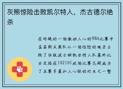 灰熊惊险击败凯尔特人,杰古德尔绝杀
